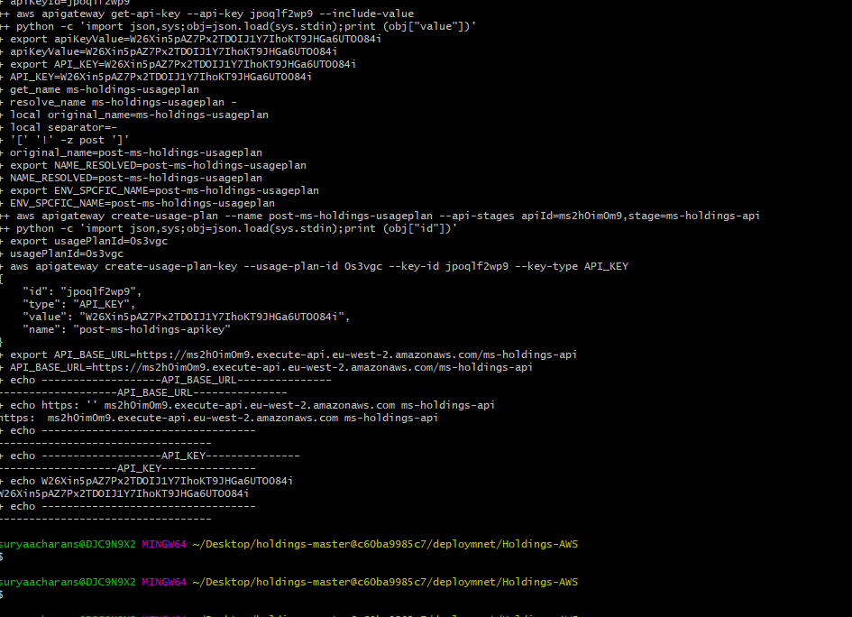 Furthermore, this can be hit from the Postman too. The x-api-key & the host API URL is taken from the last run gitbash window.