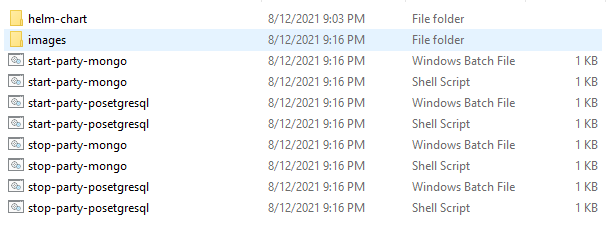9. Once all the configurations are done, start the Microservice by navigating to the folder where the .bat and .sh files are available. Under the party-helm-postgresql-pack folder and run below code.
