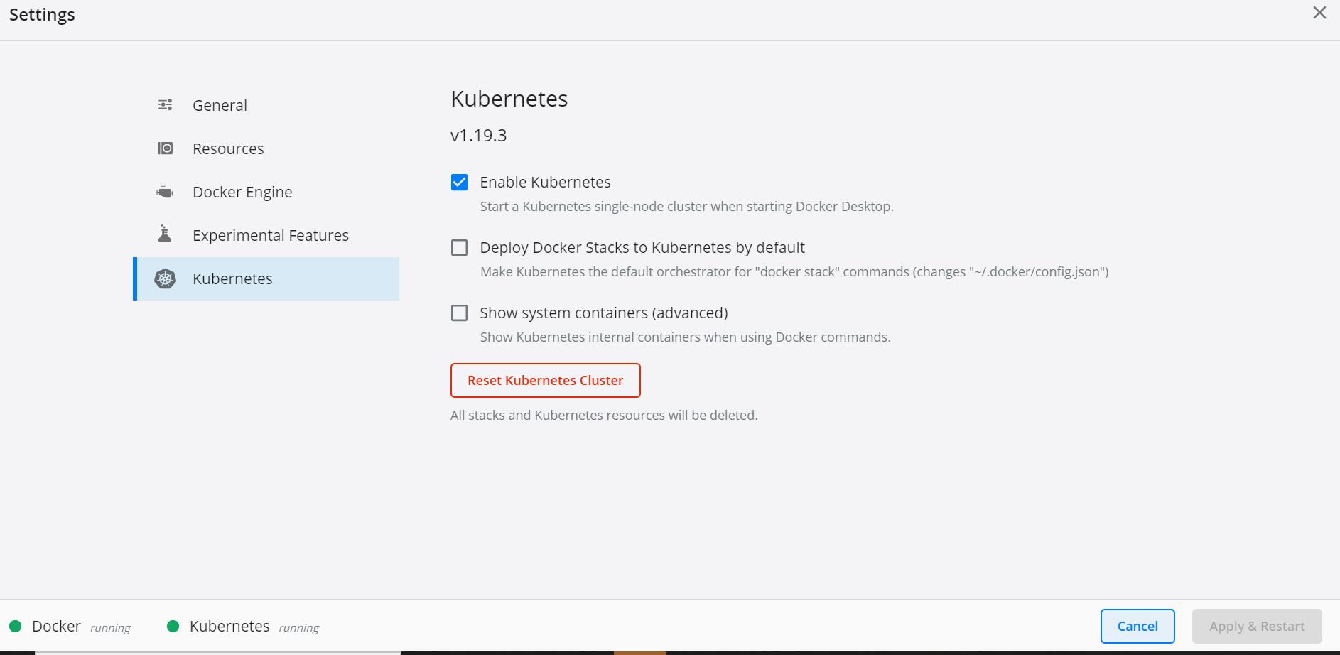 1. After the Docker is installed, enable Kubernetes in the Docker Desktop app.