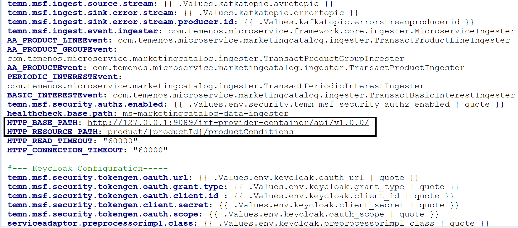 c. To enable the third party authentication, perform Keycloak configuration in ingester container in marketingcatalog-configmap.yml.