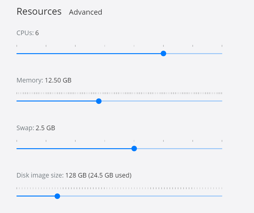 - Kubernetes requires a minimum of six CPUs to run smoothly. Go to Docker settings → Resources, and increase the CPU and Memory as shown here.