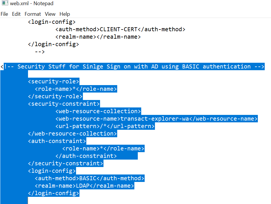 Navigate to transact-explorer-wa.war\WEB-INF\Web.xml.
