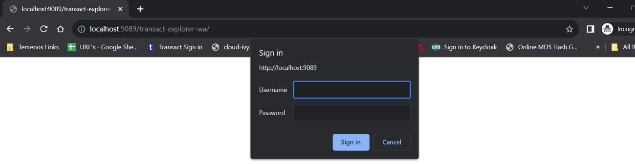 - Launch Transact Explorer. It prompts for the user credentials. Enter the system credentials.