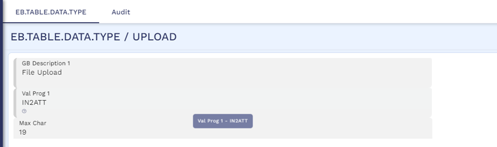 - Create a version (VERSION I EB.EXTERNAL.DMS.UPLOAD,UPLOAD.DOCUMENT) based on the new application and define document type as hot field where the validation occurs automatically.
