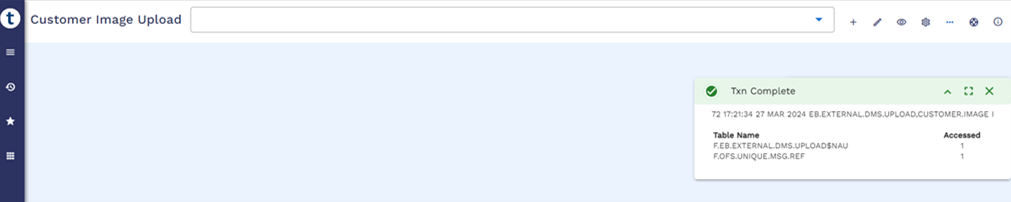 - Launch the version created above (EB.UXPB.EXTERNAL.DMS.UPLOAD,IMAGE I F3 ) to upload customer images only.
